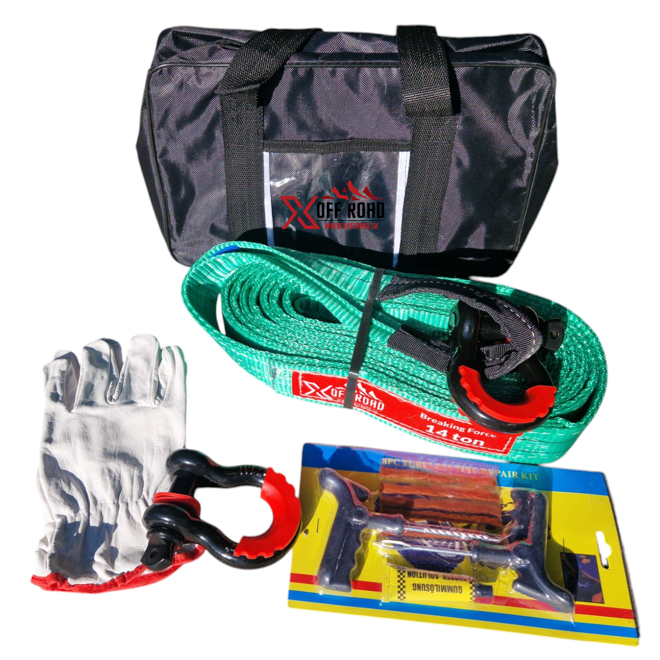 A készlet tartalma: - praktikus táska - kecskebőr kesztyű - 2x 3/4" véső - 14T 6m-es szalag - defektjavító készlet